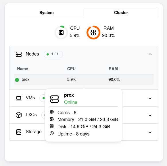Show LXCs sectionShows LXCs section on the Cluster displayyes / noyes