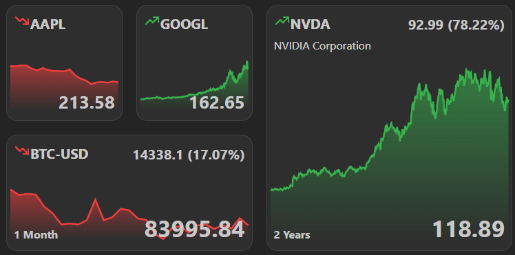 Using the Stocks widget, you can show the current stock prices of your favorite companies on your dashboard.
