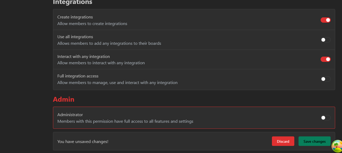• Full board access: Allow members to view, modify, and delete all boards (Including access control and danger zone)
